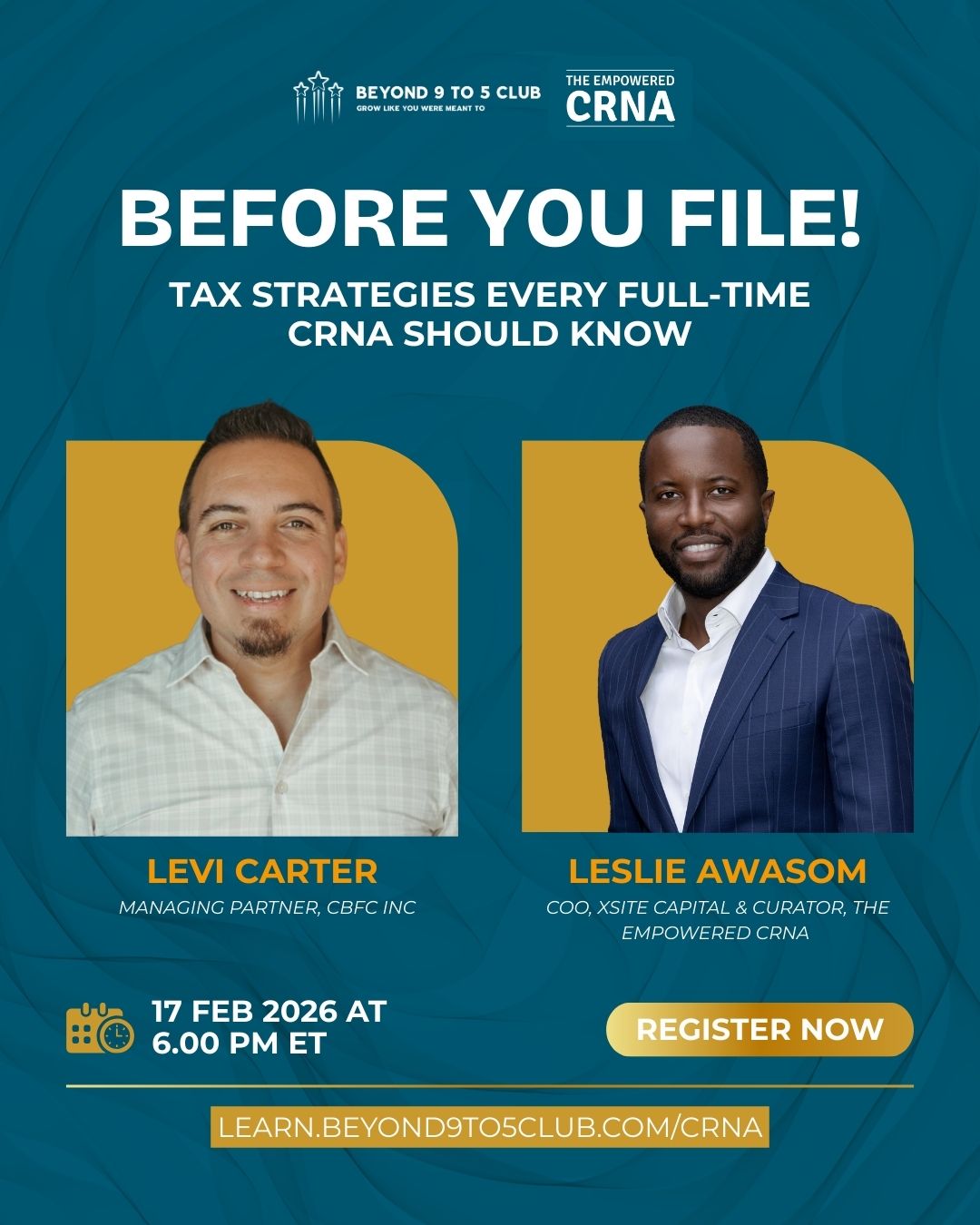 Some months we explore tax strategies that could save you tens of thousands. Other months, it's career navigation with industry veterans. Always practical. Always relevant. Always focused on what actually matters to high-income healthcare professionals. We ask questions. We share what's working and what's not. We learn from experts and from each other. And we leave with actionable steps, not just information. No cost. No catch. Just CRNAs helping CRNAs grow.